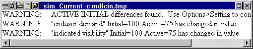 A type of simulation warning message is the reporting of differences between initial values and the first active value computed. These difference occur only when you use the ACTIVE INITIAL function. Suppose, for example, that you have the following equations: