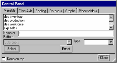 The Control Panel has a number of different tabs to manage different aspects of Vensim. Click on a tab to get to its contents. Regardless of which tab you select, there are two functions that remain.